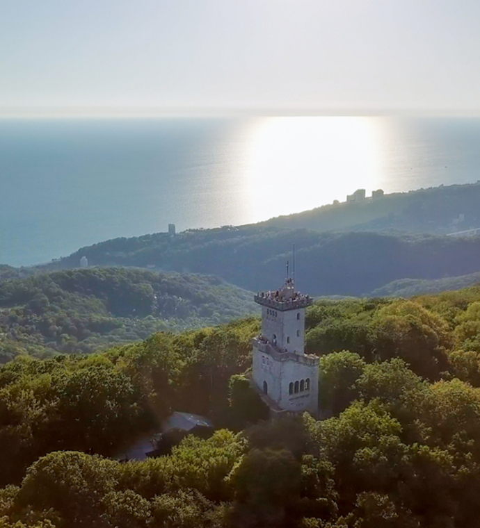 Akhun Mountain - the biggest in the region - has a beautiful tower on the top. It is located about 10 km far from central Sochi. The height of the tower is more than 30 meters and the views that open from it are stunning. The observation platform on the top of the tower gives you a chance to take superb pictures of the city.