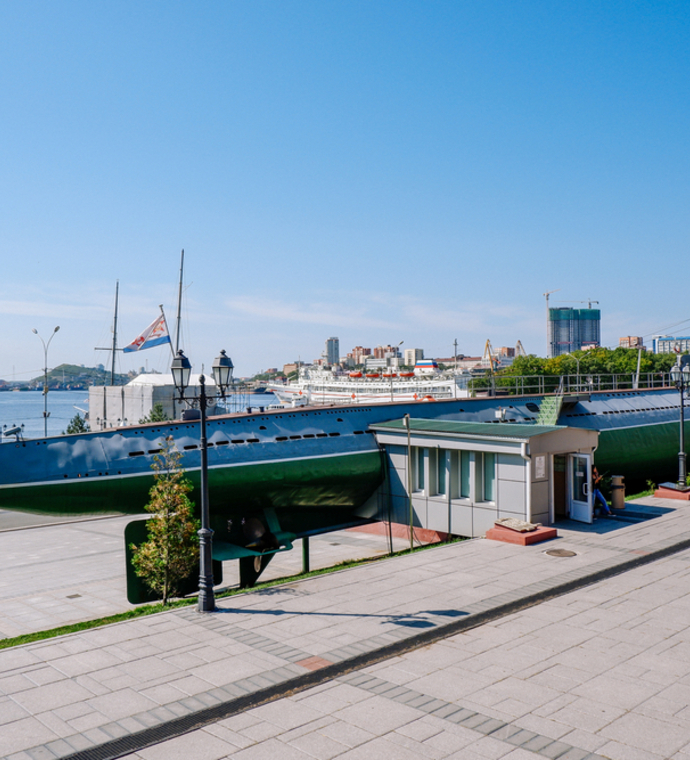 This is a real U-boat. It moved from Vladivostok to Murmansk across Alaska, Panama Canal, Great Britain, and Iceland. The U-Boat was decorated with medals and was the best one at times of the Soviet Union during the war. Then it came back to Vladivostok. Now, half of the U-Boat is a museum and the other half has been new decorated with war items. There are also memorials for the sailors who died during the fights of past times. Inside the U-Boat, you can also see the sleeping places for the crew, living room and also navigation rooms, etc.