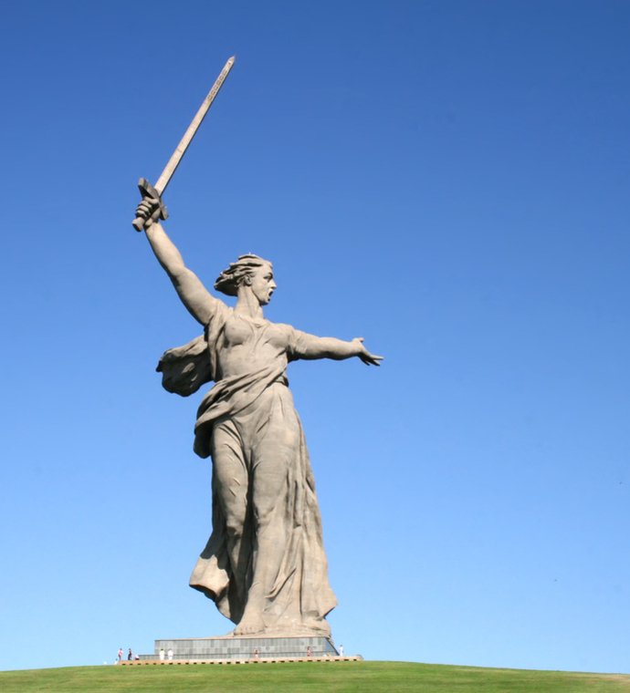 It is one of the highest statues worldwide and the highest statue in Russia and Europe; it is 2,5 times higher than the Statue of Liberty in New York. It represents a woman's figure stepping ahead with a raised sword. The sculpture symbolizes the Motherland calling its sons (Soviet citizens) to the battle against the enemy. Creating the monument started in 1959 and was ready in 1967; at that time, it was the highest monument in the world. The overall height of the statue is 85 meters.