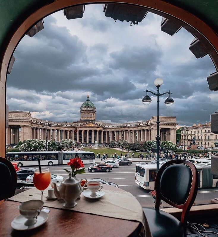 Probably, one of the best and easily accessible places for the classic coffee posts. The cafe is located in the scenic Singer House next to the famous bookstore Dom Knigi (which means ‘The House of the Book’). Go up to the second floor and enjoy the elegant interior, aromatic coffee, and the view to the Kazan Cathedral through the panoramic windows.