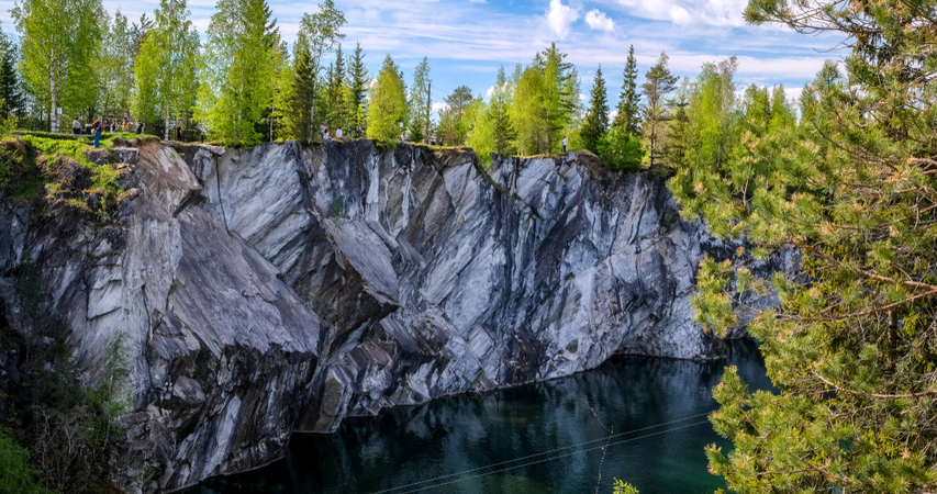The trip starts in the Ruskeala Mountain Park, the main site of Karelia, and its landmark: the Marble Canyon Lake, with crystal clear water and marble banks, which were used for building the architectural masterpieces in Saint Petersburg. If you want to see more, you can opt for off-the-beaten-track routes and enjoy the views of Monferran lake, Italian Marble Quarry, abandoned marble factory, and various picturesque lookouts.