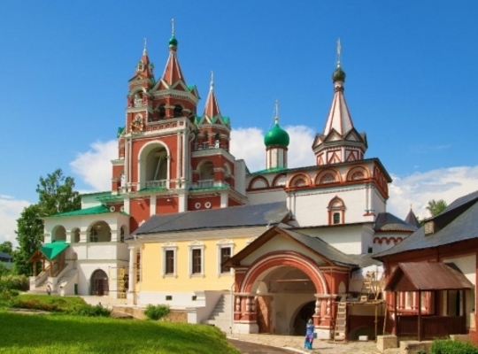 The Savvino-Storozhevsky Monastery is an Orthodox monastery of the Moscow Diocese. The monastery is located on the Storozha Mount, at the confluence of the Storozhka River into the Moskva River, two kilometers west of the town of Zvenigorod, Moscow Region. Historians say that Tsar Alexei Mikhailovich gave Savvino-Storozhevsky Monastery status of the first monastery of Russia, and only then the Kyiv-Pechersk Lavra and the Trinity- St. Sergius Mo
