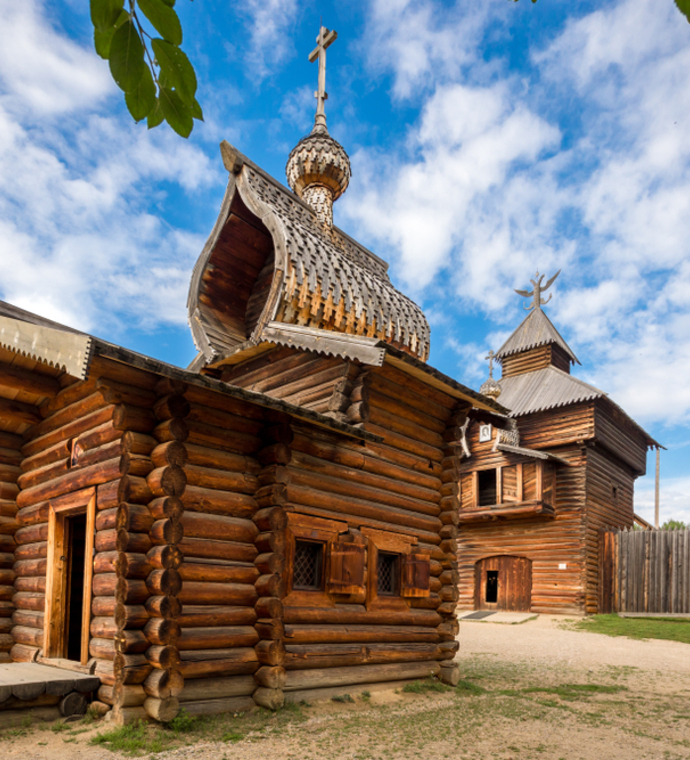 The Taltsi Museum of Architecture and Ethnography is located on the Angara 47 km south of Irkutsk. It is an open-air museum of Siberian traditional architecture. The museum contains numerous unique historical wooden buildings from villages in the Angara valley, which have been flooded after the Bratsk Dam and Ust-Ilimsk Dam construction and have been transported to the museum and reassembled there.