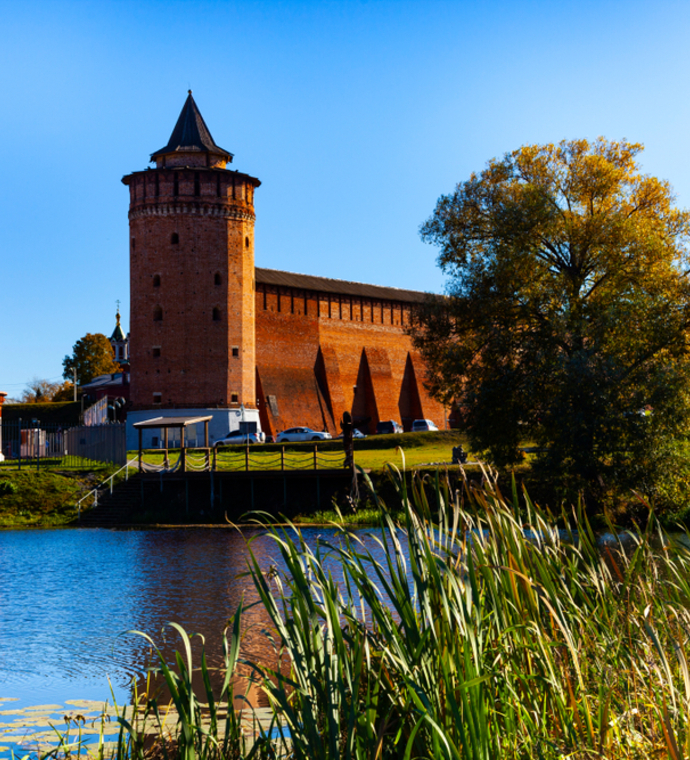 Kolomna Kremlin was built on the order of Grand Prince Vasily III: the complex includes the brick wall with seven towers (including the famous "Marina"), Assumption Cathedral, Tikhvin Church, bishop's house, and a number of other interesting old buildings.