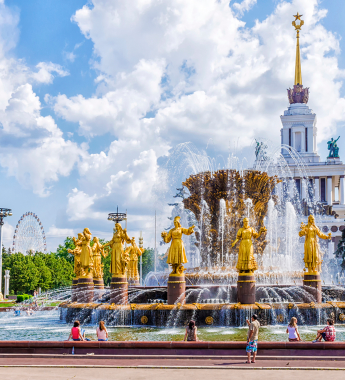 VDNH, which means the Exhibition of Achievements of the National Economy, literally was designed to demonstrate the best accomplishments of various Soviet industries. Being an enormous showcase initially, it transformed into a large recreational center with beautiful fountains all around the place, Soviet-style monuments, and a famous Space Museum dedicated to the exploration of space and science-fictional ideas of the future. Another spot for space lovers is a Space Pavillion, which looks like a temple and contains space stations and rockets simulator. Besides the cultural sights, you will find here street food and souvenir pavilions selling treats and goods from all over the world.