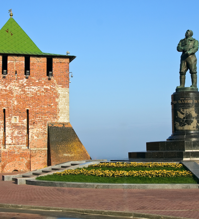 The monument to the famous pilot Valery Chkalov is considered the second most popular attraction in Nizhny Novgorod after the Kremlin. Wedding corteges go here, appointments are made here, and tourists consider it a matter of honor to be photographed next to him and walk along the huge Chkalovskaya stairs.