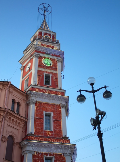 The City Duma Tower, set in the expansion of Nevsky Prospekt near the Gostiny Dvor, is visible from a long distance and takes an important place in the historical ensemble of the central thoroughfare. The vertical of the City Duma Tower, the portico of the Perinnaya Line, and the monumental building of the Gostiny Dvor create an architectural accent that defines the shape of the Nevsky Prospekt in its central part. The City Duma building originally externally repeated the image of the Silver Rows, and then was repeatedly reconstructed and completely lost its original form.