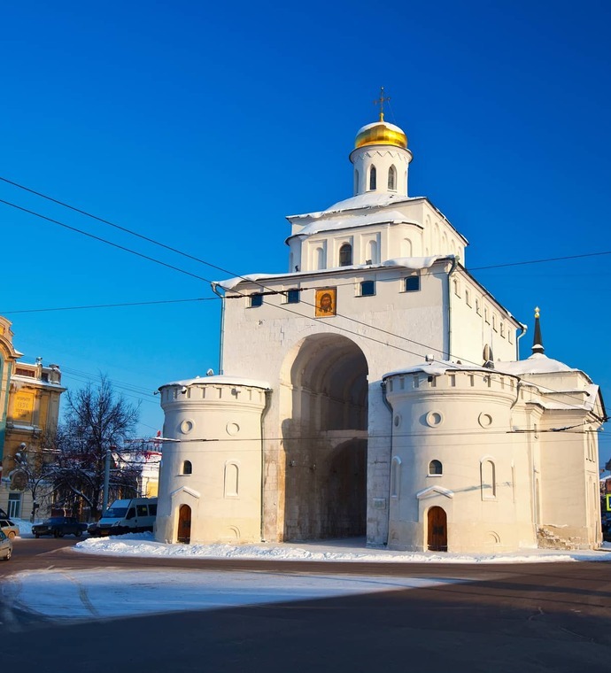 The Golden Gate in Vladimir is one of the pearls in the treasury of the Russian Golden Ring. They were built in 1164 under Prince Andrew Bogolyubsky, who moved the capital of the principality from Suzdal to Vladimir. It was at that time that the city was surrounded by a long rampart and had seven entrance gates. Only the Golden Gate has survived to our times. Once the oak gates were gilded, hence their name, but over time, the plates with a sputtering of precious metal were lost.
