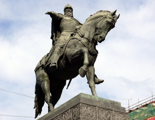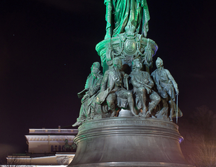 The Motherland Calls is a central part of the monument to the Heroes of Stalingrad Battle on Mamaev Kurgan in Volgograd. It is a part of the triptych; the other two parts are the Rear-front Memorial in Magnitogorsk and the Soviet War Memorial in Berlin. The point of the triptych implies that the sword was created in Magnitogorsk, was raised by the Motherland, and was laid down after the victory in Berlin.