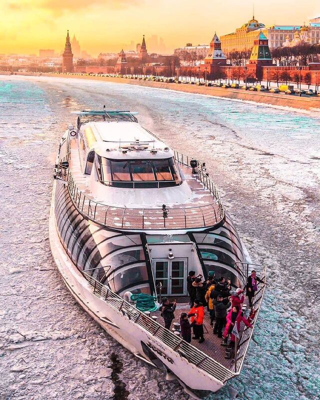 The main advantage of using the Radisson boats for a cruise of the Moscow river is that they operate worldwide. They offer tickets for different classes: just a seat in the 2nd class or a table in the 1st class where you can order dinner, drink a glass of champagne, and enjoy live music on board! There are daily departures in the morning and the afternoon from the Ukraine Hotel and Gorky Park.