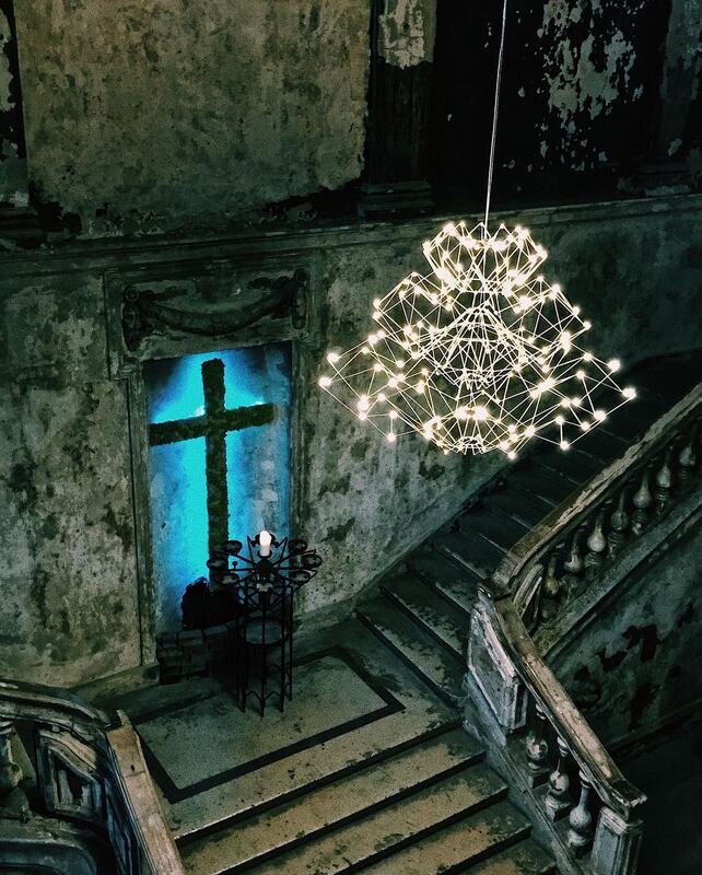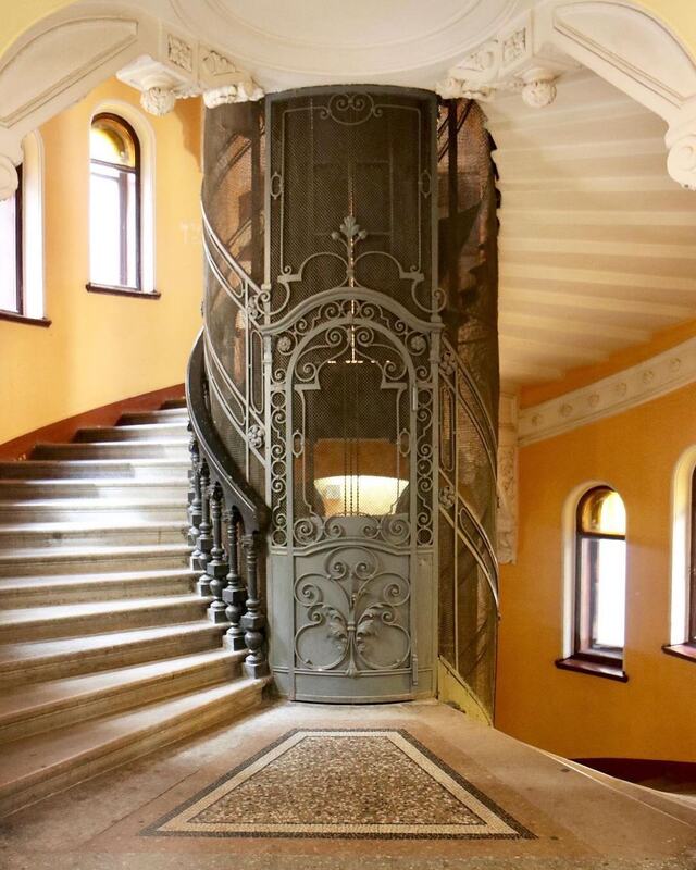 The residential house we are talking about was built in the 19th century. Its spiral stairs go up and around the well-elaborated wrought-iron lift tower. Soft light comes through the big yellow windows making the staircase look mysterious and of course, extremely photogenic.