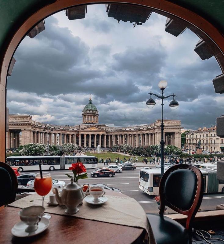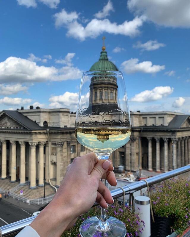 Another place with a stunning city panorama is just 5 minutes away if you go across Nevsky Prospect. In Terrassa, one of the most famous rooftop restaurants, you can take selfies in front of the Kazan Cathedral (now from the backside), Singer House and the Church of the Savior on Spilled Blood. Besides, the place is well-known for its cozy interior, international cuisine, and an open kitchen where you can watch your meal being cooked.