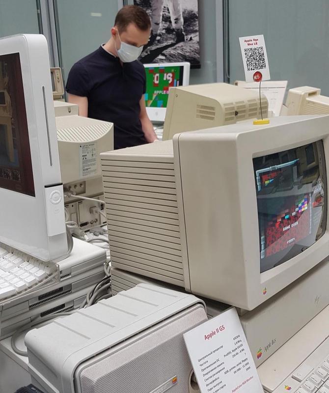 The Apple Technics Museum has an interactive exhibition, and every visitor may turn on computers to use them for playing vintage 1990s games. The oldest exhibit is Apple II, created in 1977 — the first series Apple computer.