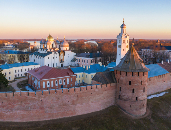 The main Novgorod's attraction is the Kremlin that remained from 1044. It has multiple churches around its territory and is located on the Wolchow bank. It has a great view. Suppose you ascend one of the Kremlin Towers. In that case, you will see picturesque scenery, so it is a beautiful combination of nature breakaway, historical insight, and a cultural acquaintance with ancient Russia.