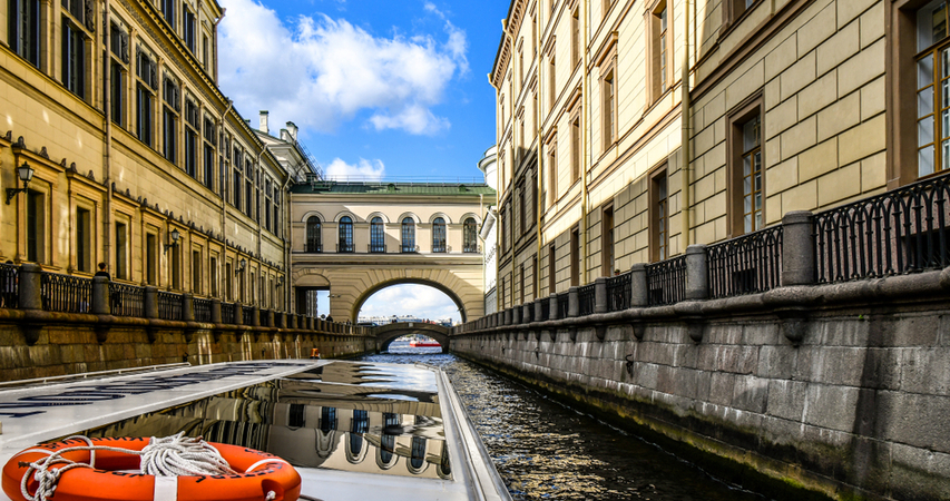 Next to the New Hermitage, you will find the shortest canal of the city-the Winter canal. You should stop by one of its bridges and enjoy a breathtaking view of the so-called Russian Venice. Then you will proceed to another city's waterway - the Moika River.