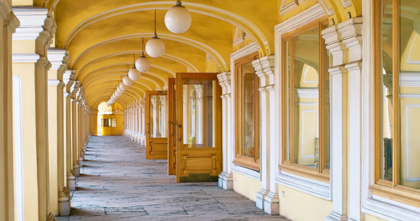 Return to the Nevsky prospect and head to an eye-catching yellow building with arches, the Great Gostiny Dvor.