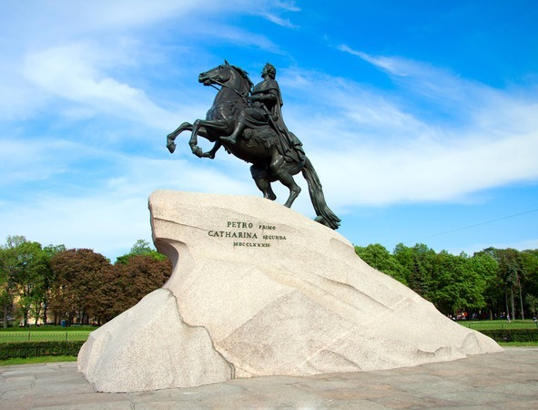 Leaving the cathedral, you will see Alexander's park in front of you. Have a pleasant stroll through the park and find Peter the Great's statue overlooking the Neva River. It is the city's most well-known monument to Peter the I, St Petersburg's founder and one of Russia's greatest Emperors. Unveiled on Catherine the Great's order, the monument represents Peter as a brilliant reformer who drastically changed Russia and made it nearly the most powerful state in Europe.
