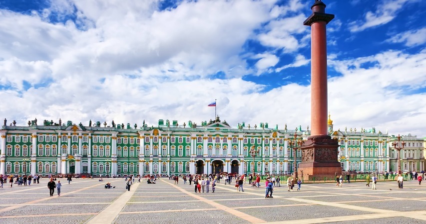 In the center of the square, Alexander's column is a memorial to Napoleon's victory in the Patriotic war of 1812. Walking around the column, look at the General Staff Headquarters building, a long yellow classical structure, which is almost 1 km long! It is here that the best collection of Impressionists in Russia is exhibited.